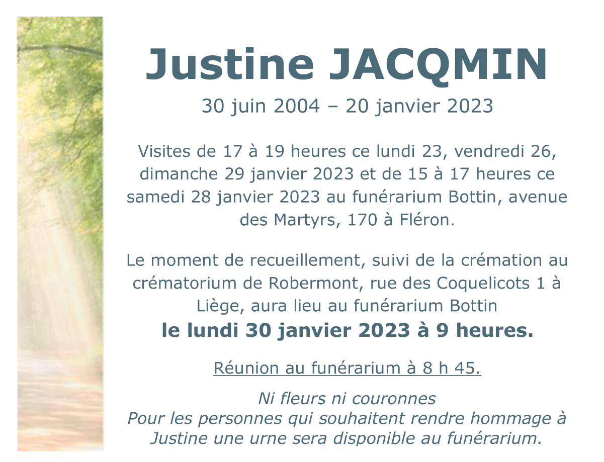 Fallecida en Liège (4000) el viernes, 20 de enero de 2023 a la edad de 18 años