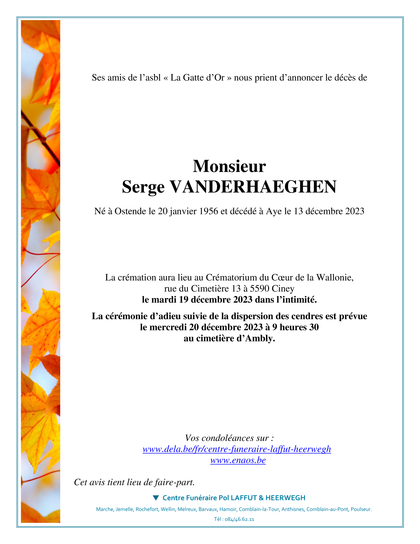 Décédé à Aye (6900) le mercredi 13 décembre 2023 à l'âge de 67 ans