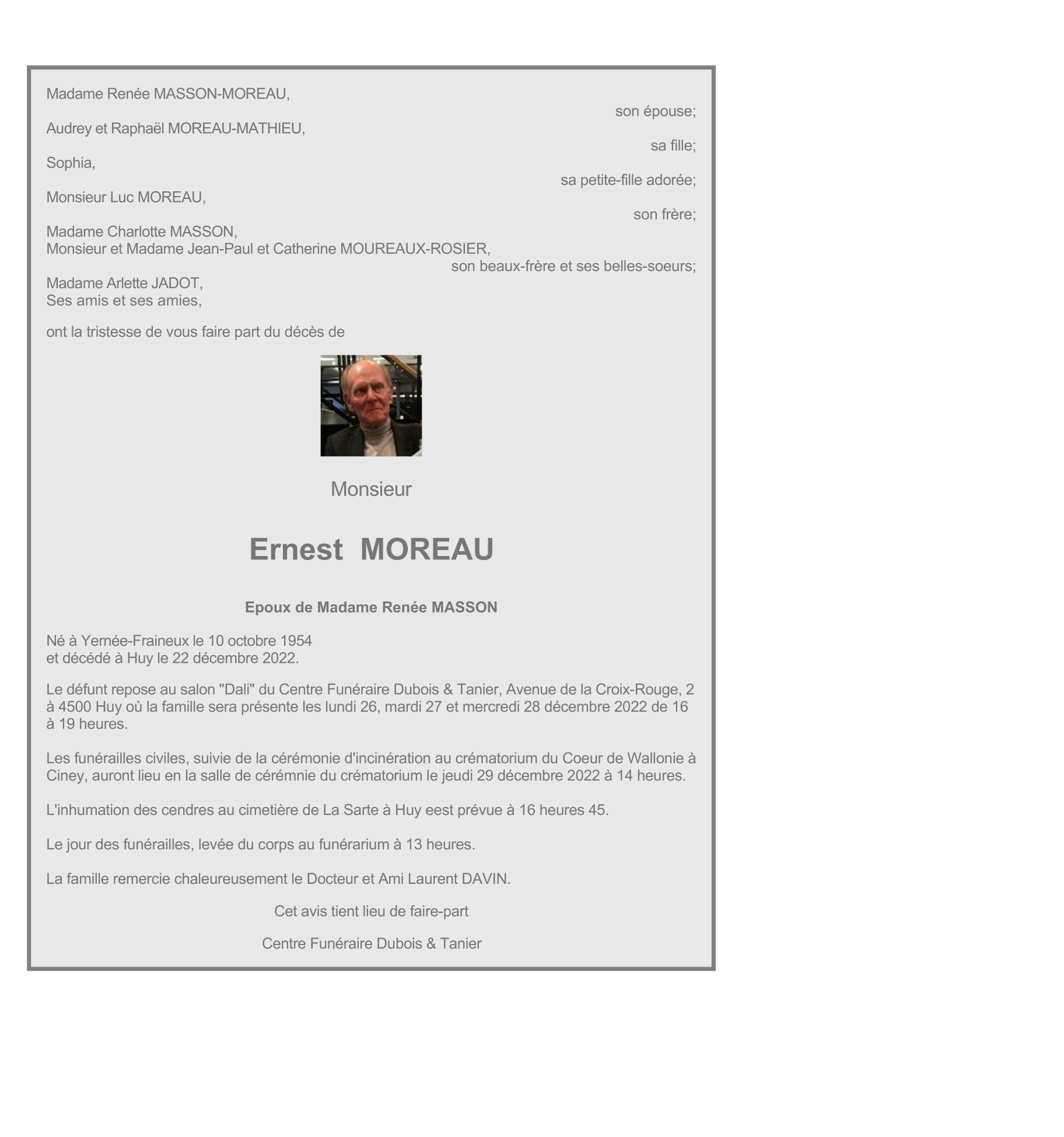 Décédé à Huy (4500) le jeudi 22 décembre 2022 à l'âge de 68 ans