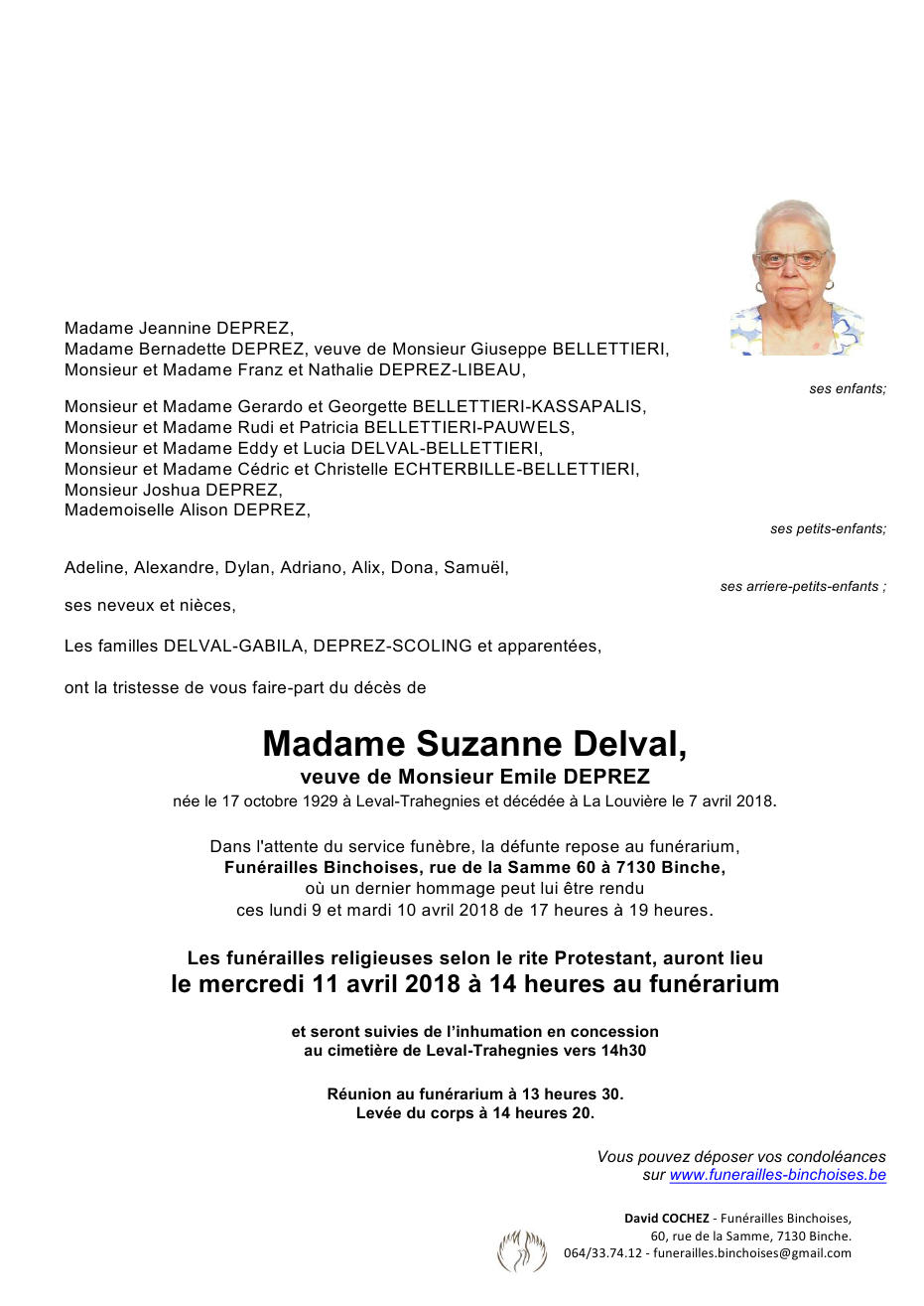 Overleden te La Louvière (7100) op zaterdag 7 april 2018 op 88-jarige leeftijd