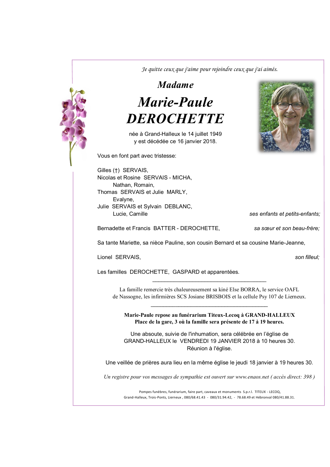 Died in Grand-Halleux (6698) on 16 January 2018 at the age of 68 years