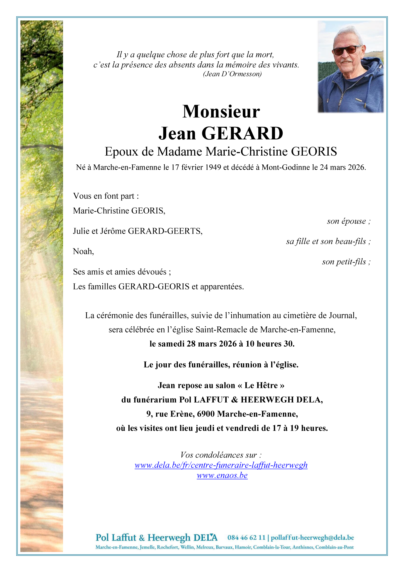 Né à Marche-en-Famenne (6900) le jeudi 17 février 1949