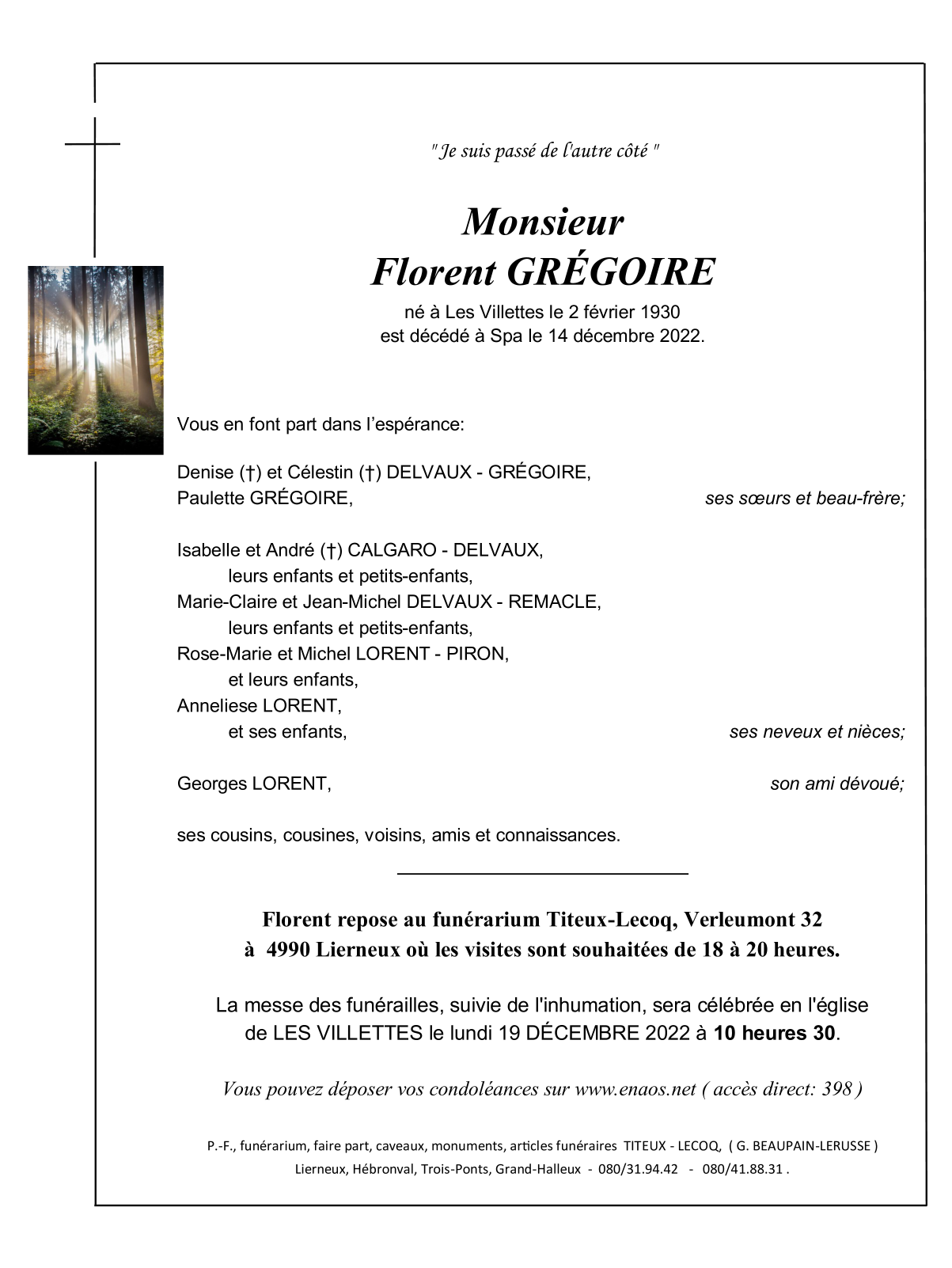 Décédé à Spa (4900) le mercredi 14 décembre 2022 à l'âge de 92 ans