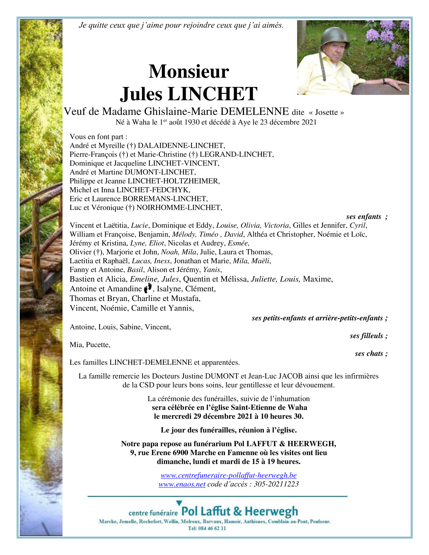 Widower of Madame Ghislaine-Marie dite "Josette" DEMELENNE