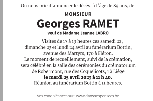 Décédé à Liège (4000) le mardi 18 avril 2023 à l'âge de 89 ans