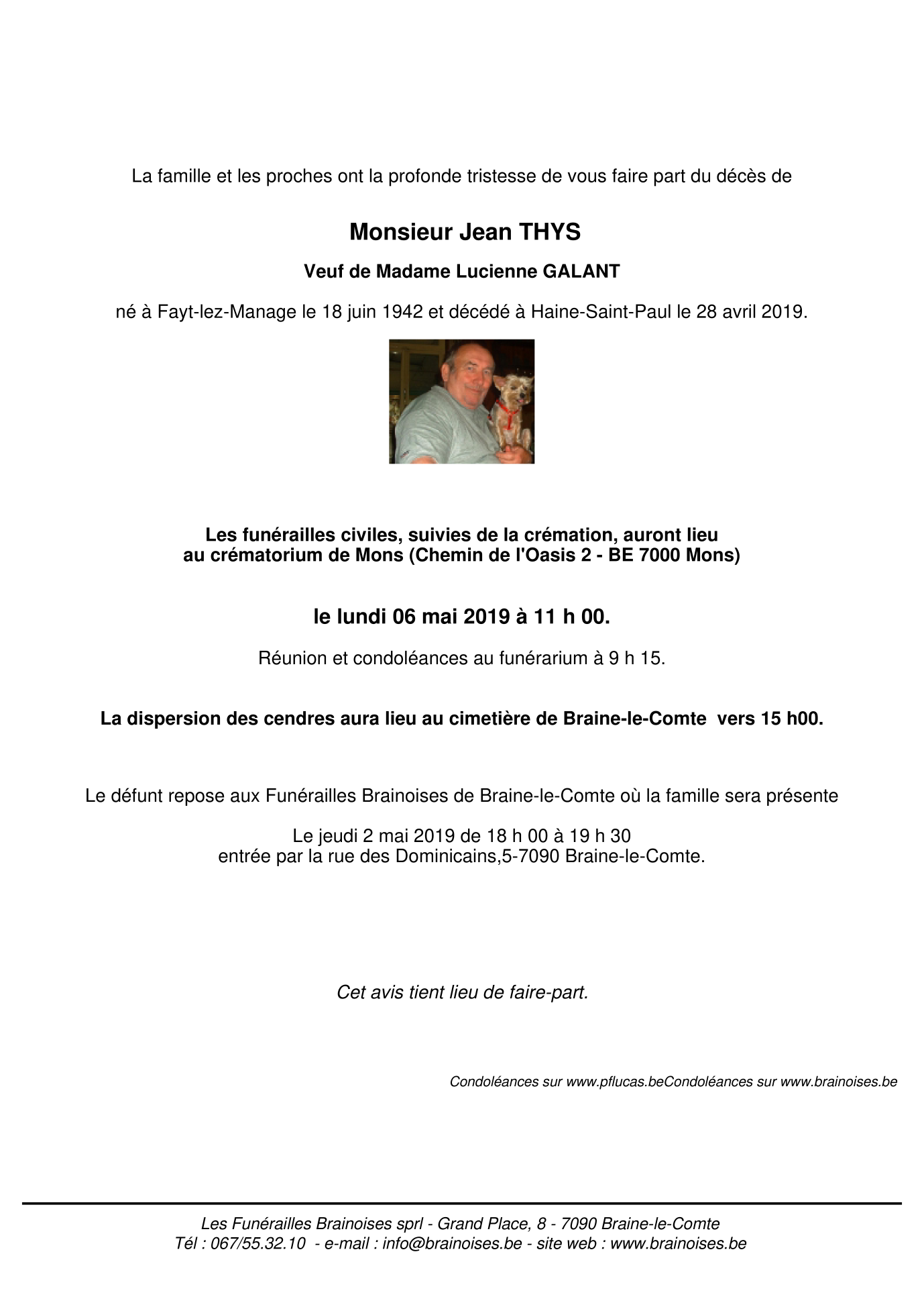 Overleden te Haine-Saint-Paul (7100) op zondag 28 april 2019 op 76-jarige leeftijd