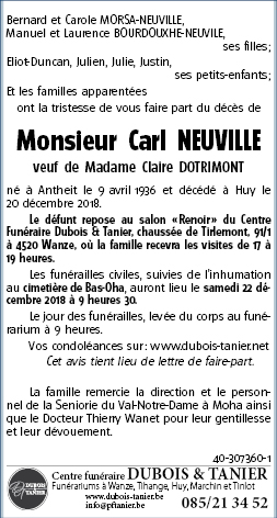 Fallecido en Huy (4500) el jueves, 20 de diciembre de 2018 a la edad de 82 años