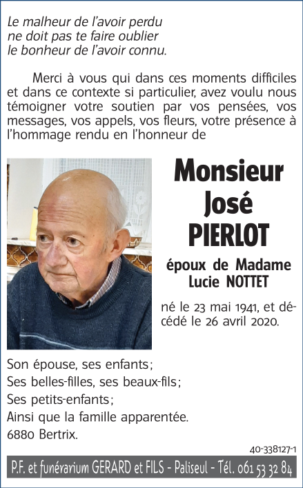 Fallecido en Bertrix (6880) el domingo, 26 de abril de 2020 a la edad de 78 años