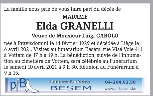 Fallecida en Liège (4000) el martes, 6 de abril de 2021 a la edad de 92 años