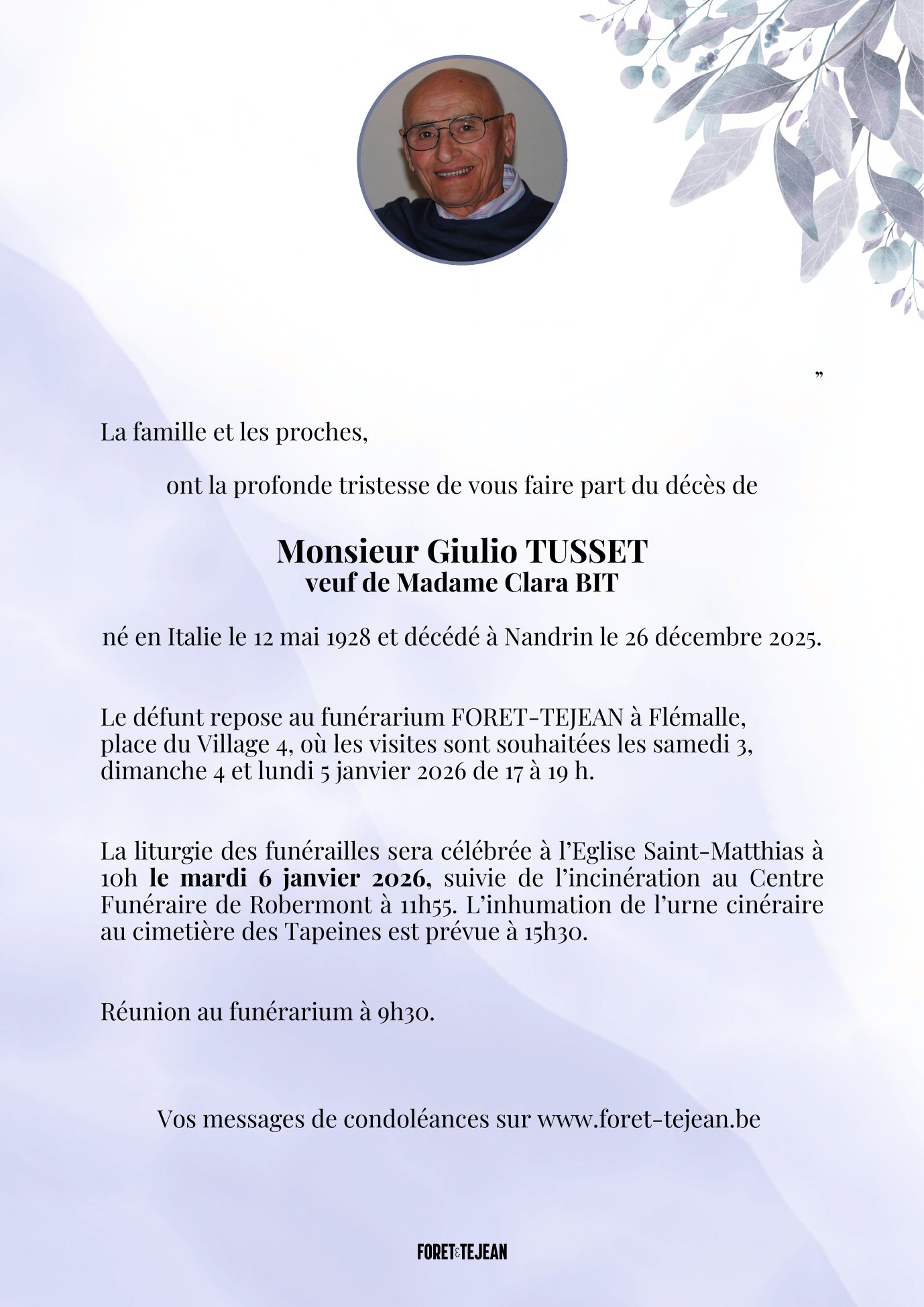 Décédé à Nandrin (4550) le vendredi 26 décembre 2025 à l'âge de 97 ans