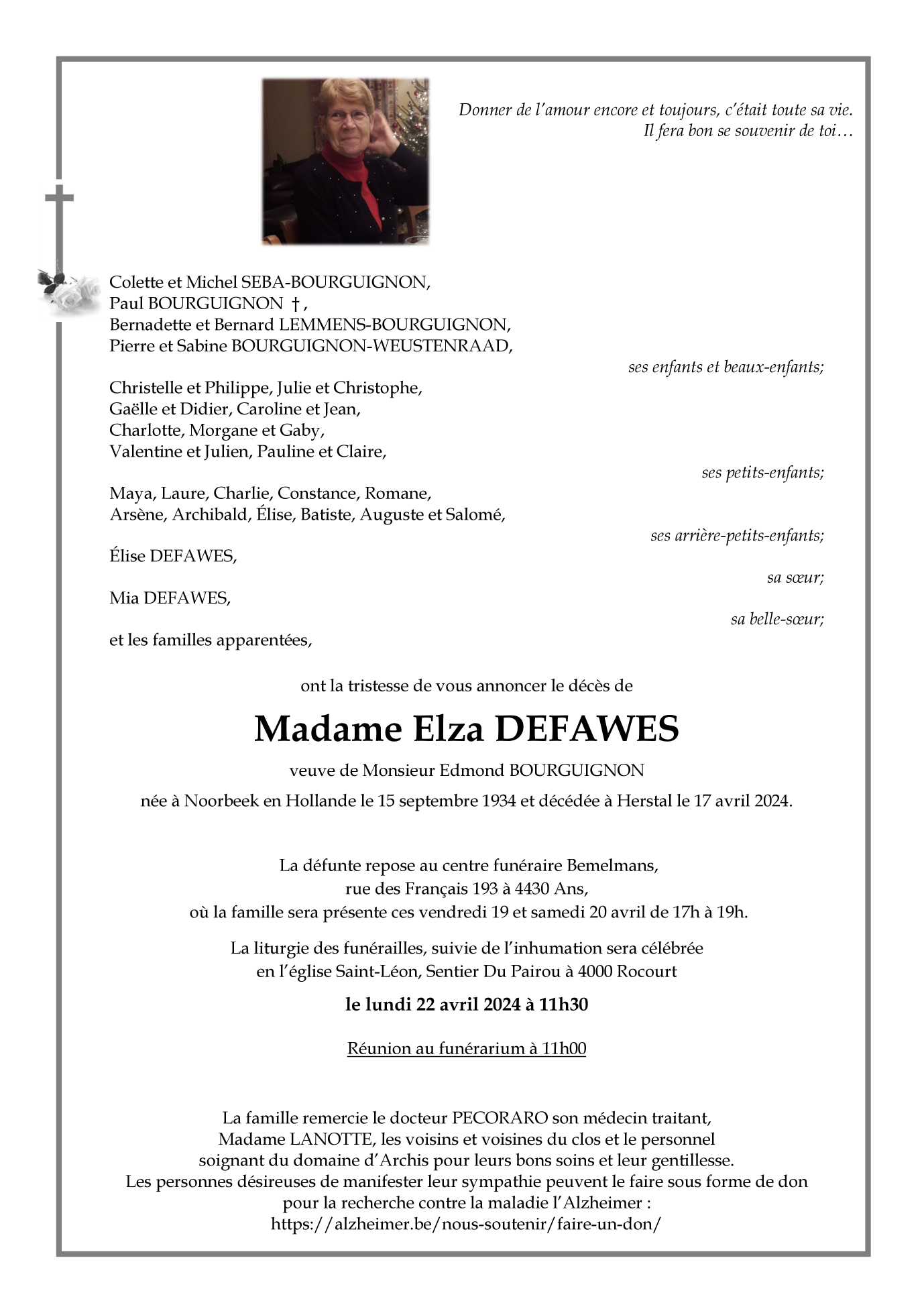 Madame Elza DEFAWES