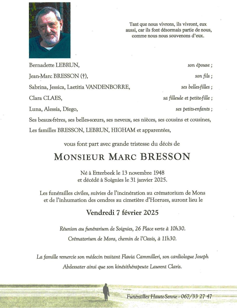 Décédé à Soignies (7060) le vendredi 31 janvier 2025 à l'âge de 76 ans