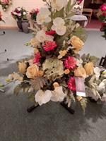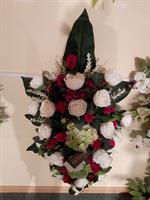 Vasque de fleurs artificielles avec carte de condoléance