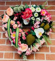 Coeur de fleurs artificielles blanches (roses, orchidées...) Hauteur: 50cm Largeur: 50 cm