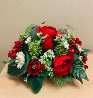 Coupe lesté pour éviter la prise au vent (lys, roses et renoncule) Hauteur 30 cm largeur 40 cm