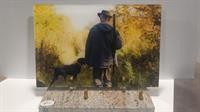 Plaque en granit avec un motif de chasseur.