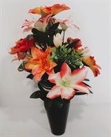 Fleurs fraîches. Dessus de cercueil avec des fleurs rouge et orange. (Fleurs de saison)