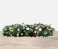 Fleurs fraîches. Grand dessus de cercueil avec des fleurs rouge et blanche. (Fleurs de saison)