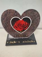 | Plaque funéraire en altuglace en forme de coeur Plaque funéraire en altuglace . Socle en granit noir.
