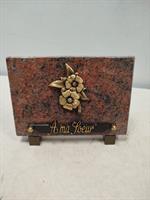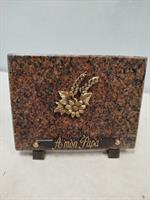 | Plaque en granit avec fleurs en bronze Plaque funéraire en granit avec fleurs en bronze.