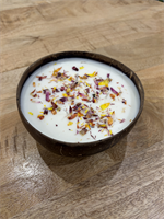 Unieke kaars gegoten in een natuurlijke kokosnootschaal, afgewerkt met een wisselende mix van gedroogde bloemenblaadjes. Elke kaars is anders en heeft een heerlijke, verrassende geur. Perfect als sfeermaker of cadeau.