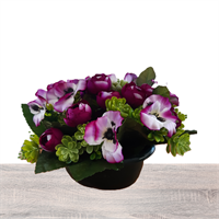 Gros bouquet de pensées fuchsias et roses en tergal.