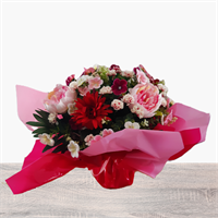 niet-contractuele fotoGros bouquet pensées fuchsias et roses tergal