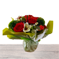 niet-contractuele fotoCône bouquet de roses rouges tergal