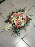 Couvre cercueil en fleurs de soie avec une carte ou un ruban - Couleurs peuvent varier (photo non contractuelle - livraison dans les 24 heures)